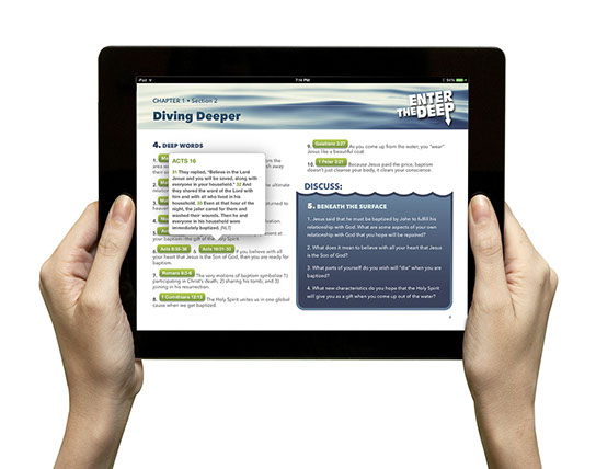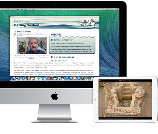 “Enter the Deep” is a Multi-touch AppleBook experience that can help anyone lead someone to Christ through baptism. Has a new believer asked you for Bible studies and you felt a little stumped about where to begin? Looking for materials that have been field tested, on today’s generation? Looking for materials that are more age appropriate for ages 17 to 40-somethings? Just relax! Open your iPad , iPhone or Mac and walk your friend through the highly-engaging experience of “Enter the Deep.”